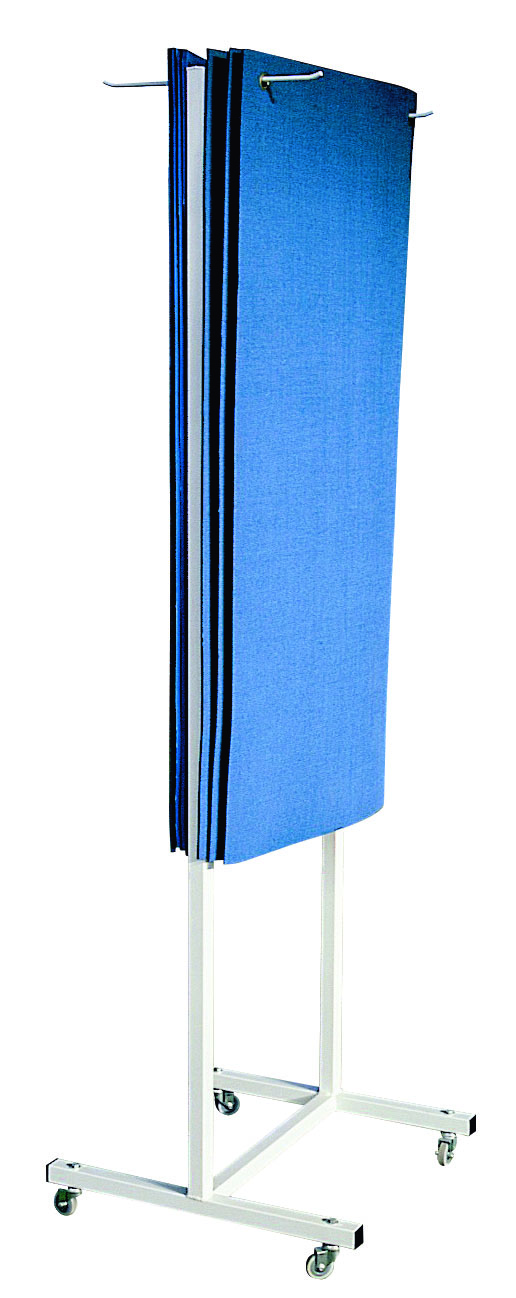 Metallic frame mounted on 4 pivoting wheels. 40 mats in capacity. Storage for mats with eyelets. 2m00 height. 50cm between eyelets. The unit