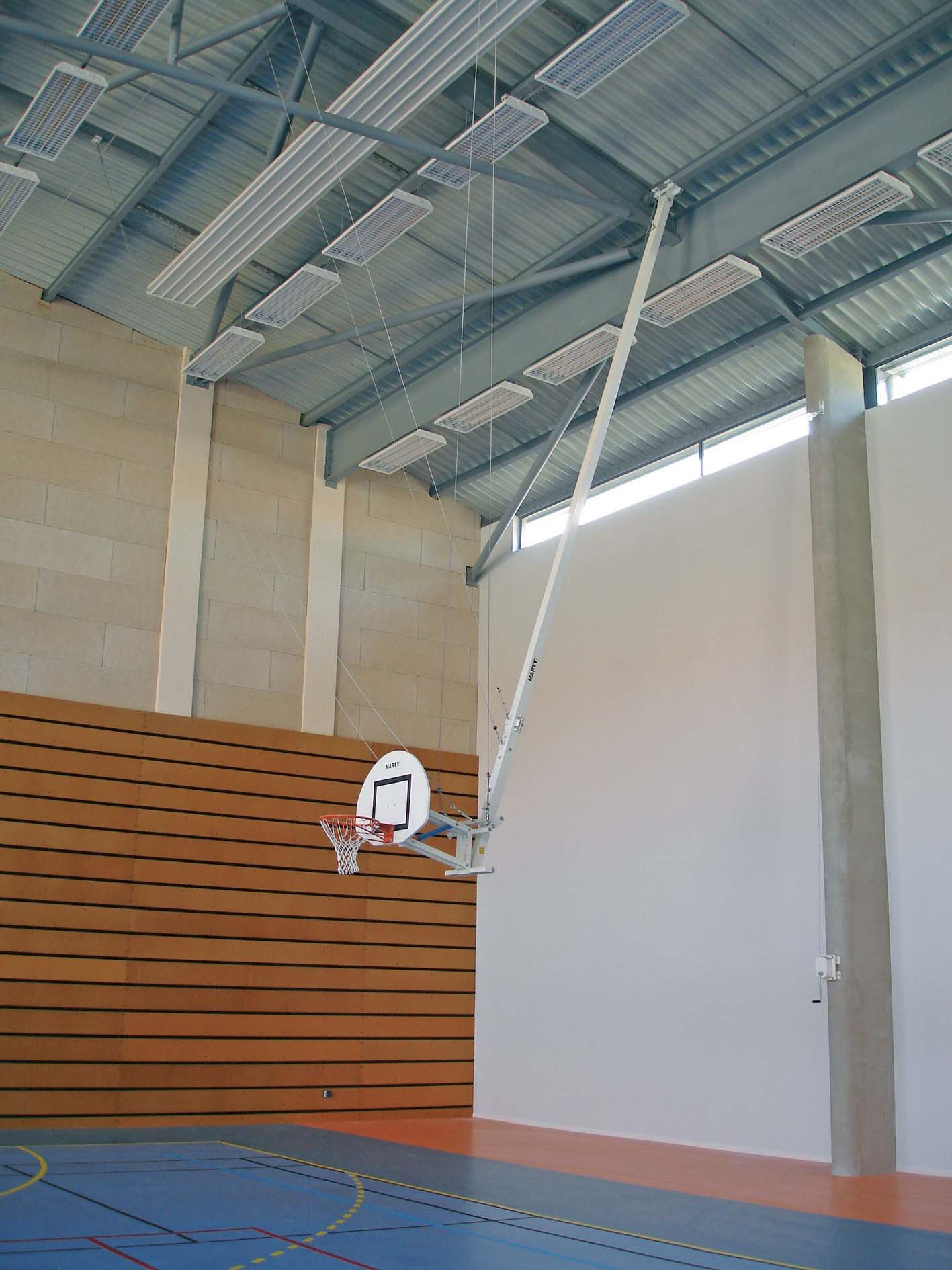Fixing devices, fold-away, pulleys and winch are to be on the same portico.