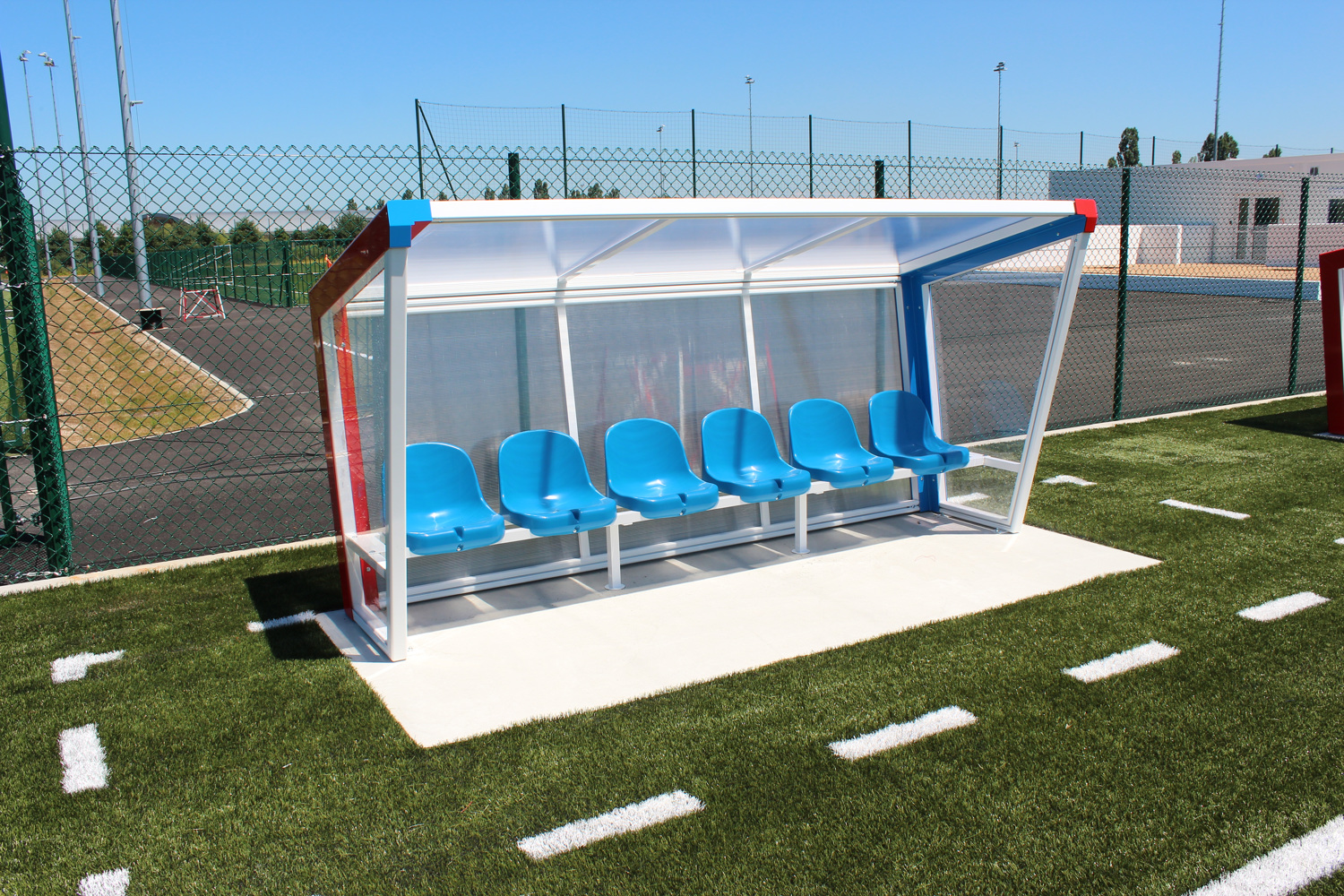 -Sides filling, translucent roof and back in alveolar polycarbonate double walls 6mm