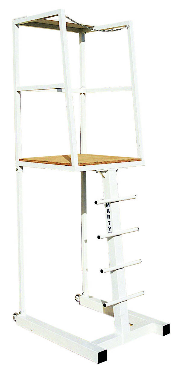 Metallic frame WHITE powdered for INDOOR use. Platform height 1m35. With wheels for transport. The unit