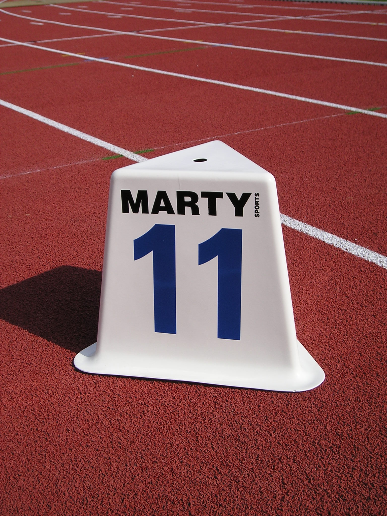 For short or long throwing. Polyester 3 sides. 35cmheight. WHITE with BLUE printing on 3 sides, Stackable. Precise number when ordering. Unit