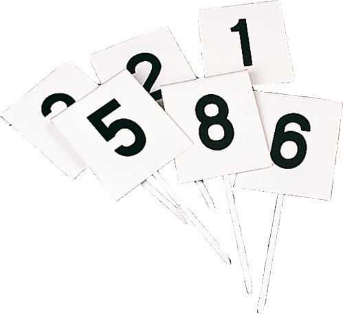Steel – White polyester powdered with printed numbers from 1 to 12. LONG THROWING. Ø130mm marker. Set of 12