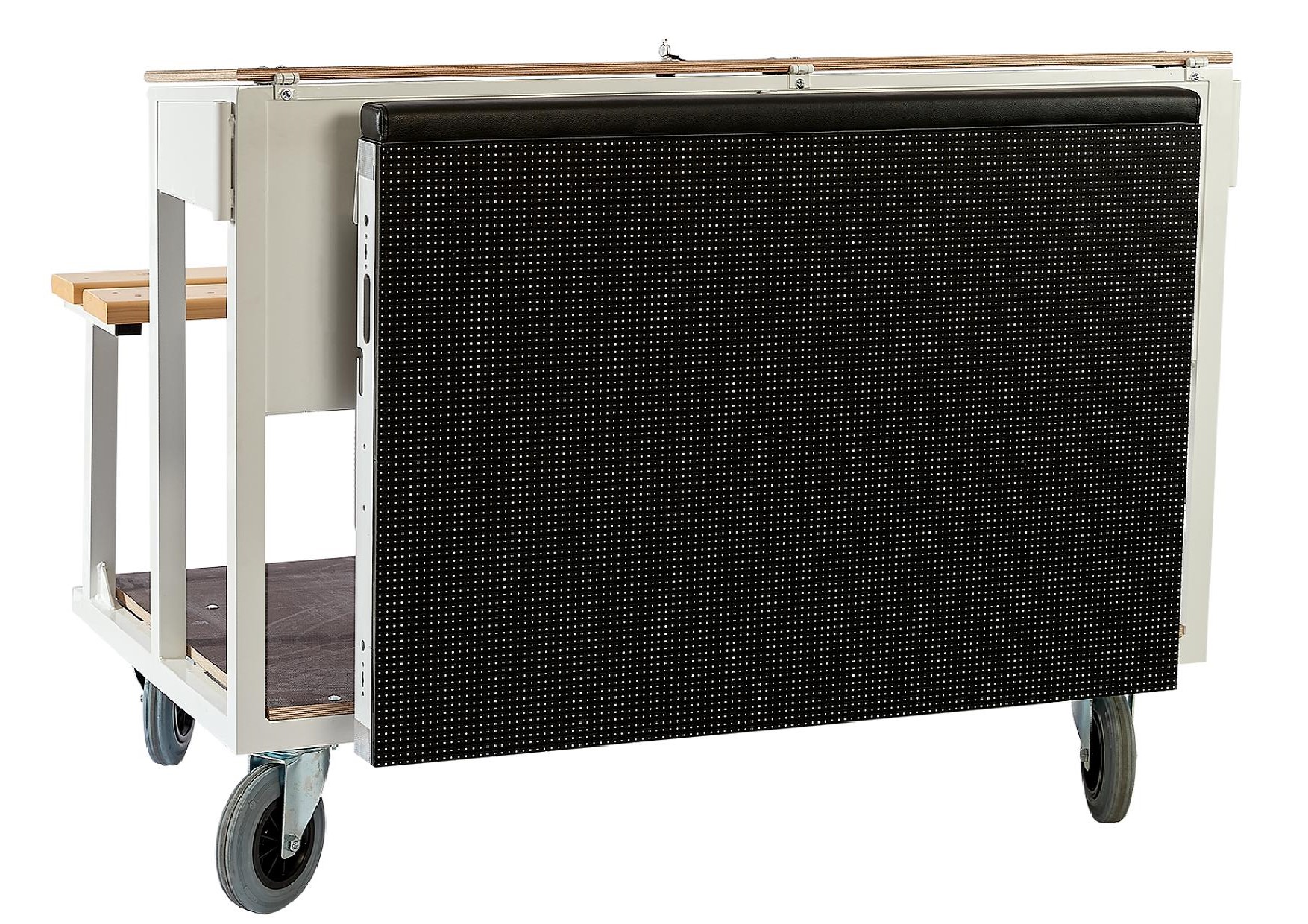 4 roues pivotantes à frein Ø 200mm.