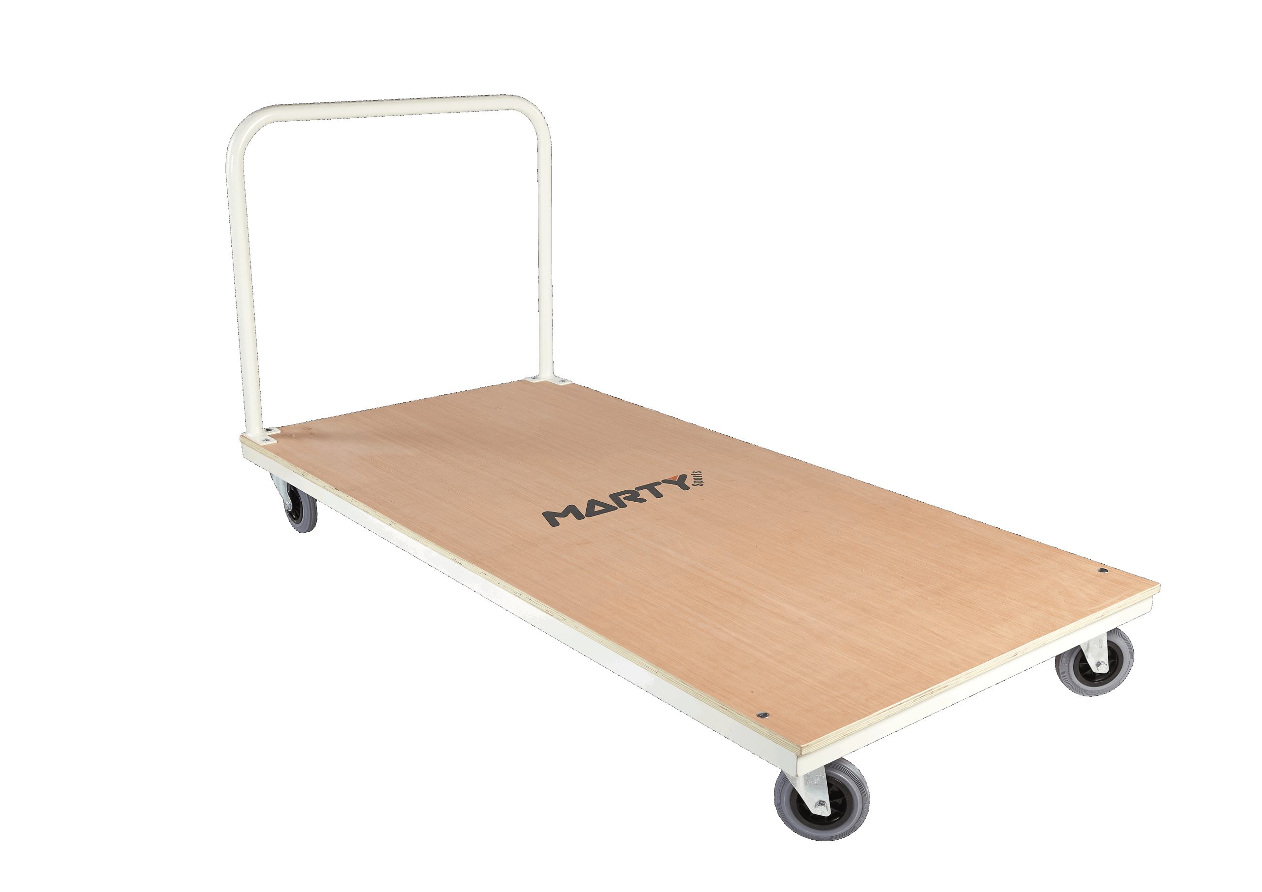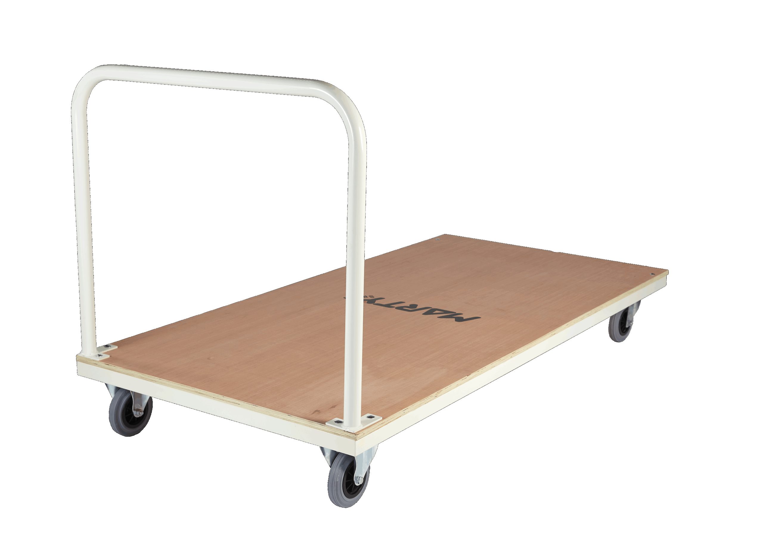 Ossature métalllique avec 4 roues Ø 160mm grise (2 roues fixes et 2 roues pivotantes) – Plateau bois – 2m00 x 1m00 –