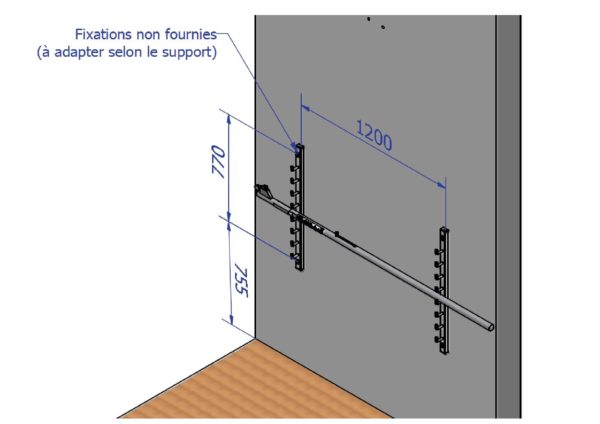 Pour rangement vertical de 4 paires de poteaux de badminton à fourreaux.