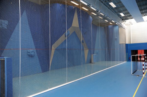Flasques en acier espacées et soudées sur l’axe pour guider les sangles qui en s’enroulant autour de l’axe relève le filet ou le rideau.