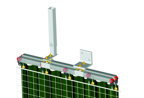 Ferrure métallique poudrée blanc qui permet d’assembler l’ensemble rails+support à la charpente-