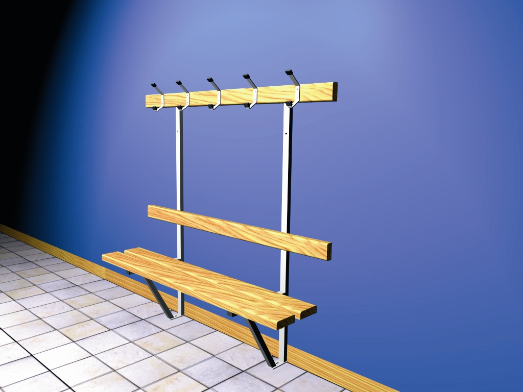 Assise + porte patères + dossier – BOIS EXOTIQUE – SUPPORT GALVANISE + RAL SPECIFIQUE –