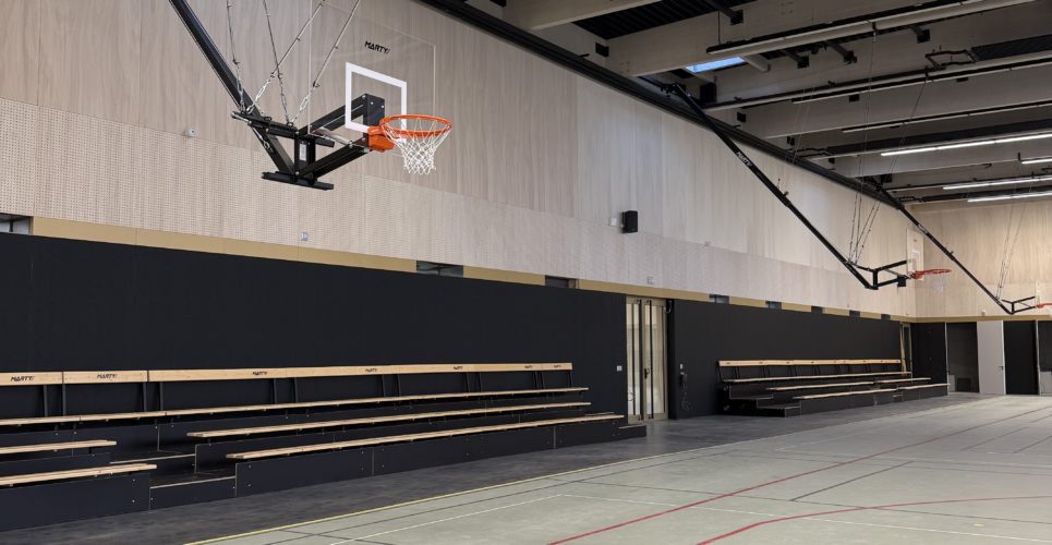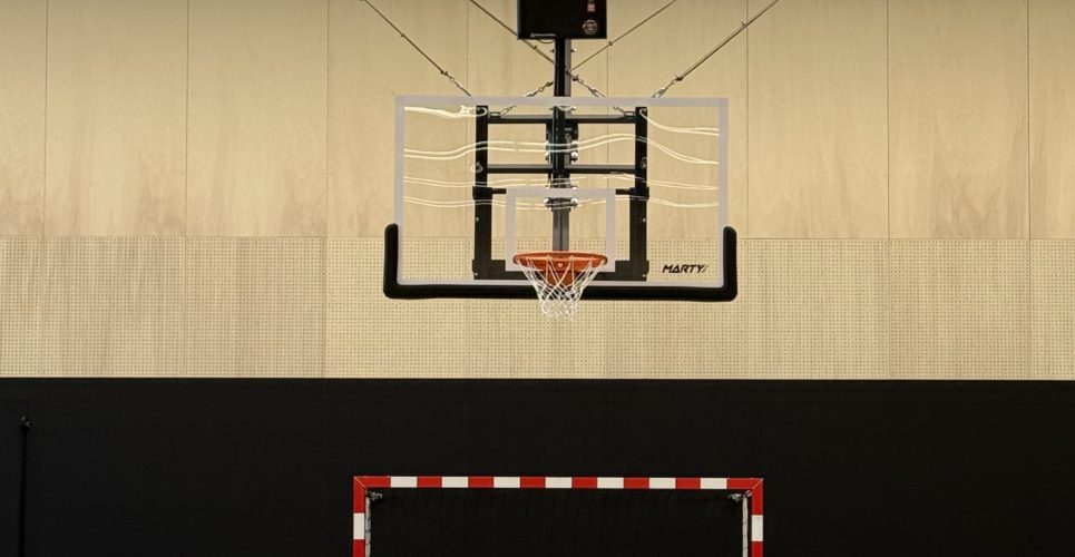 Basket-ball : buts relevables sur charpente, alliant gain de place, sécurité et design ⛹️♂️