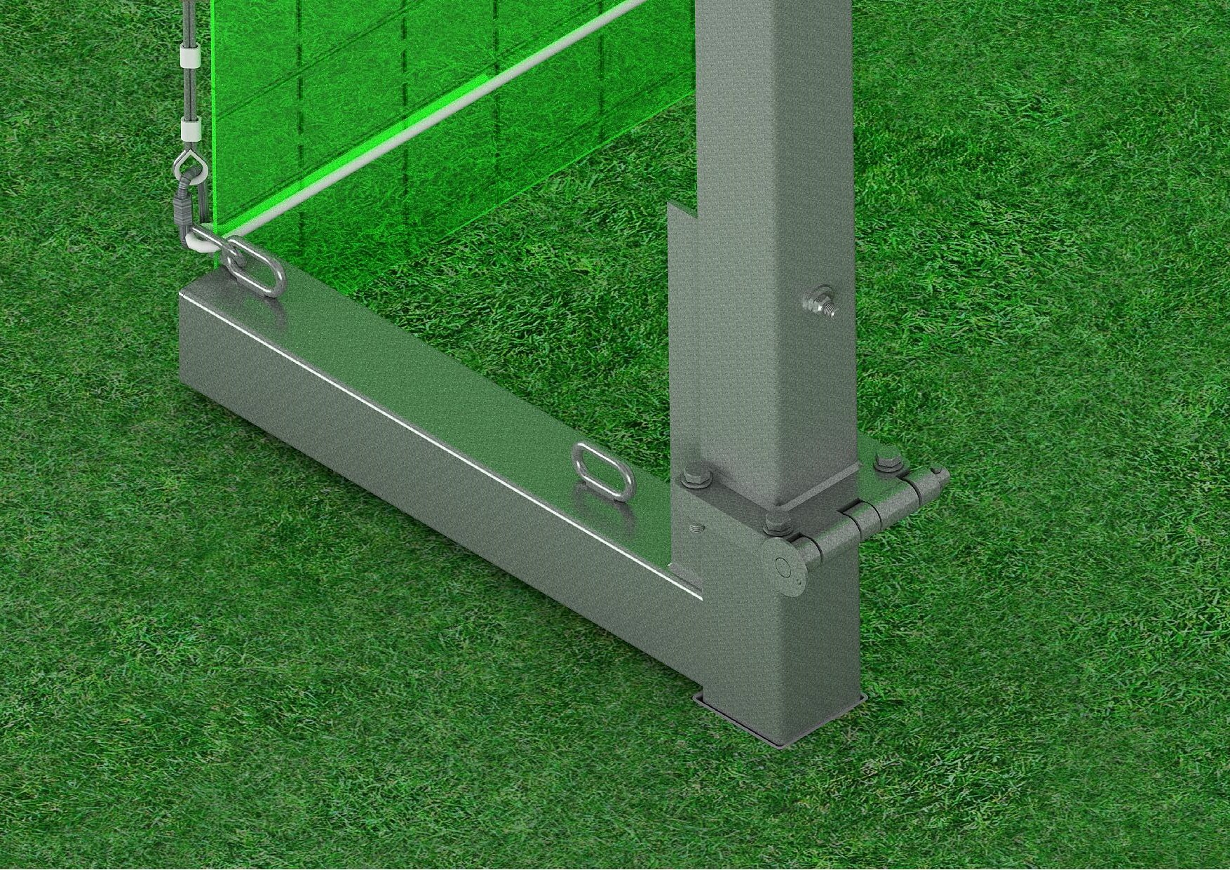 équipés de poulies et de drisses pour le hissage du filet depuis le sol