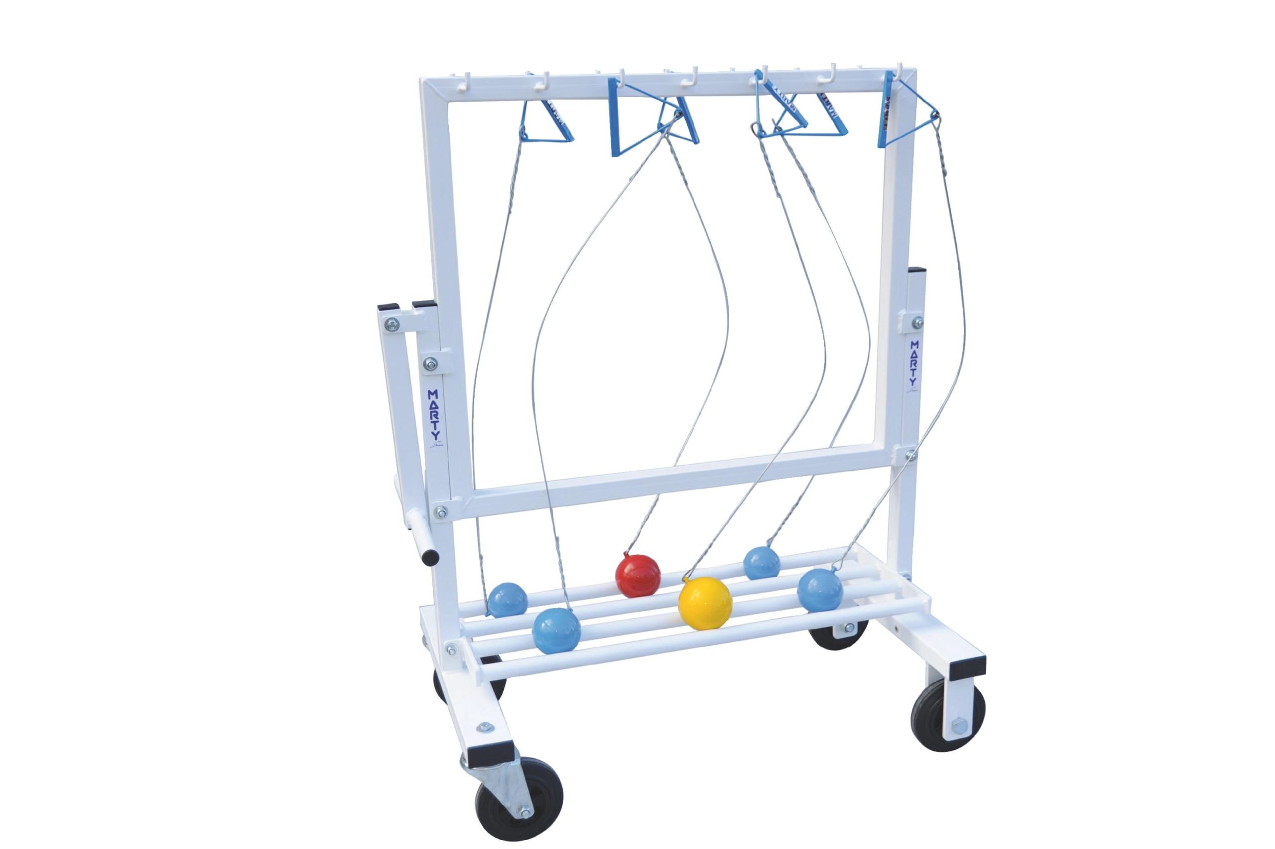 Construction métallique avec 4 roues diamètre 160mm dont 2 pivotantes.