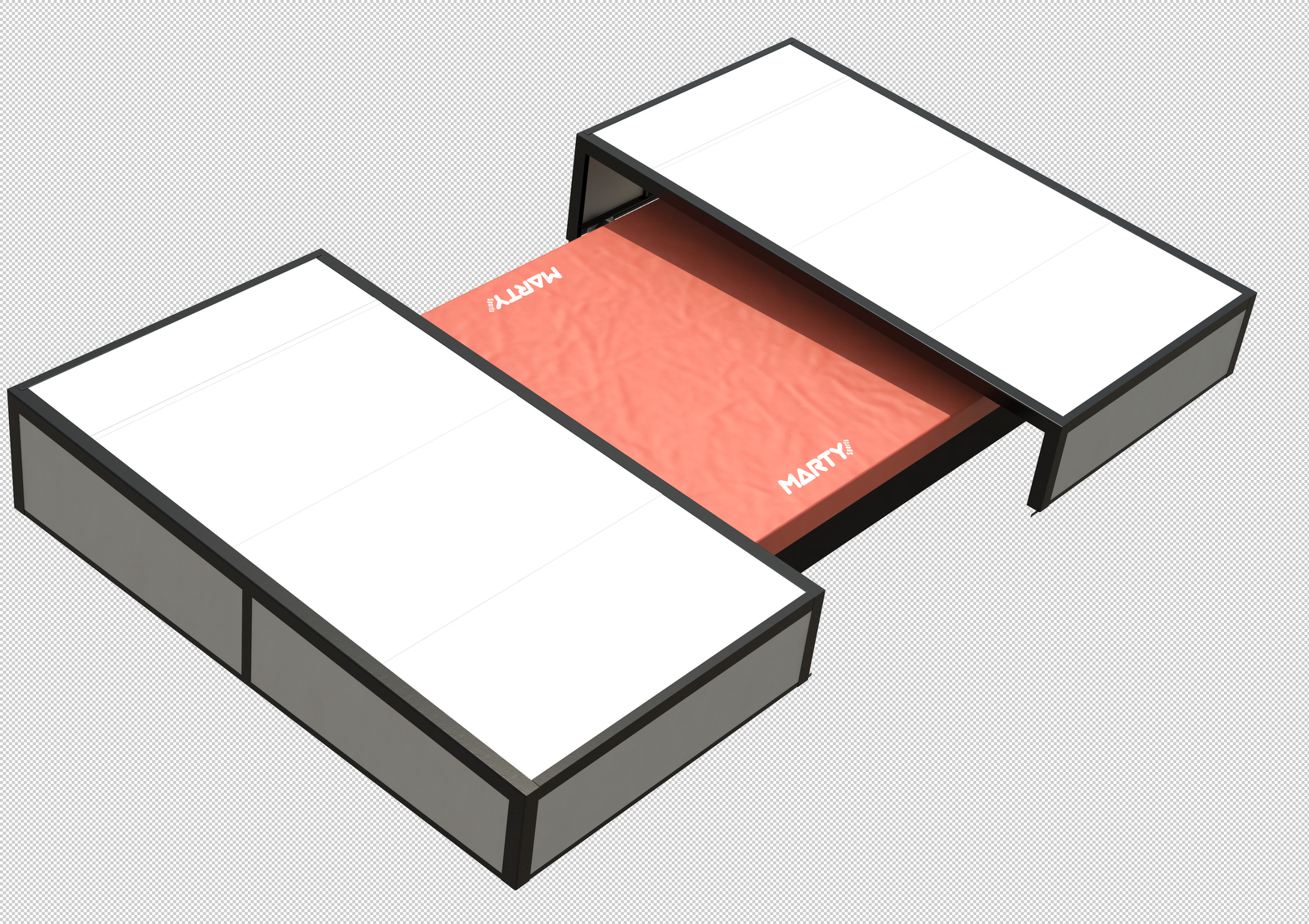 – Toit et côtés constitués par des panneaux en profils SPECIFIQUES MARTY section carré 60mm soudés avec remplissage en tôle aluminium épaisseur 2mm insérée dans une feuillure spécialement adaptée.