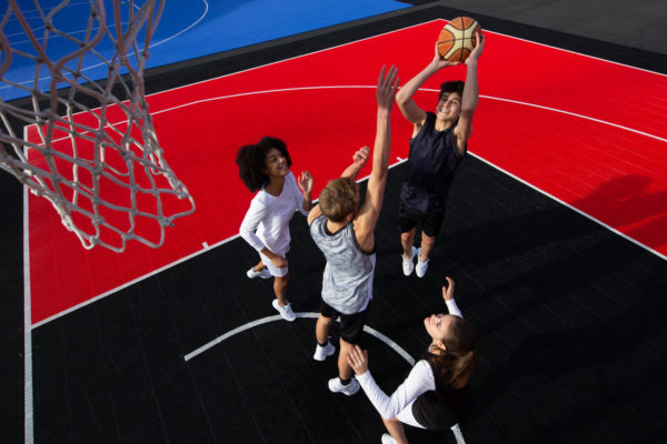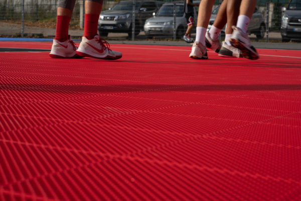 Terrain de basket 3×3 en dalles extérieures clipsables, recommandé FFBB.