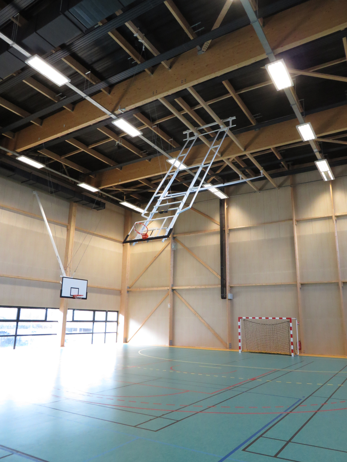 But de basket suspendus en parallélogramme sans câbles de maintien sur les cotés – Idéal pour le badminton –