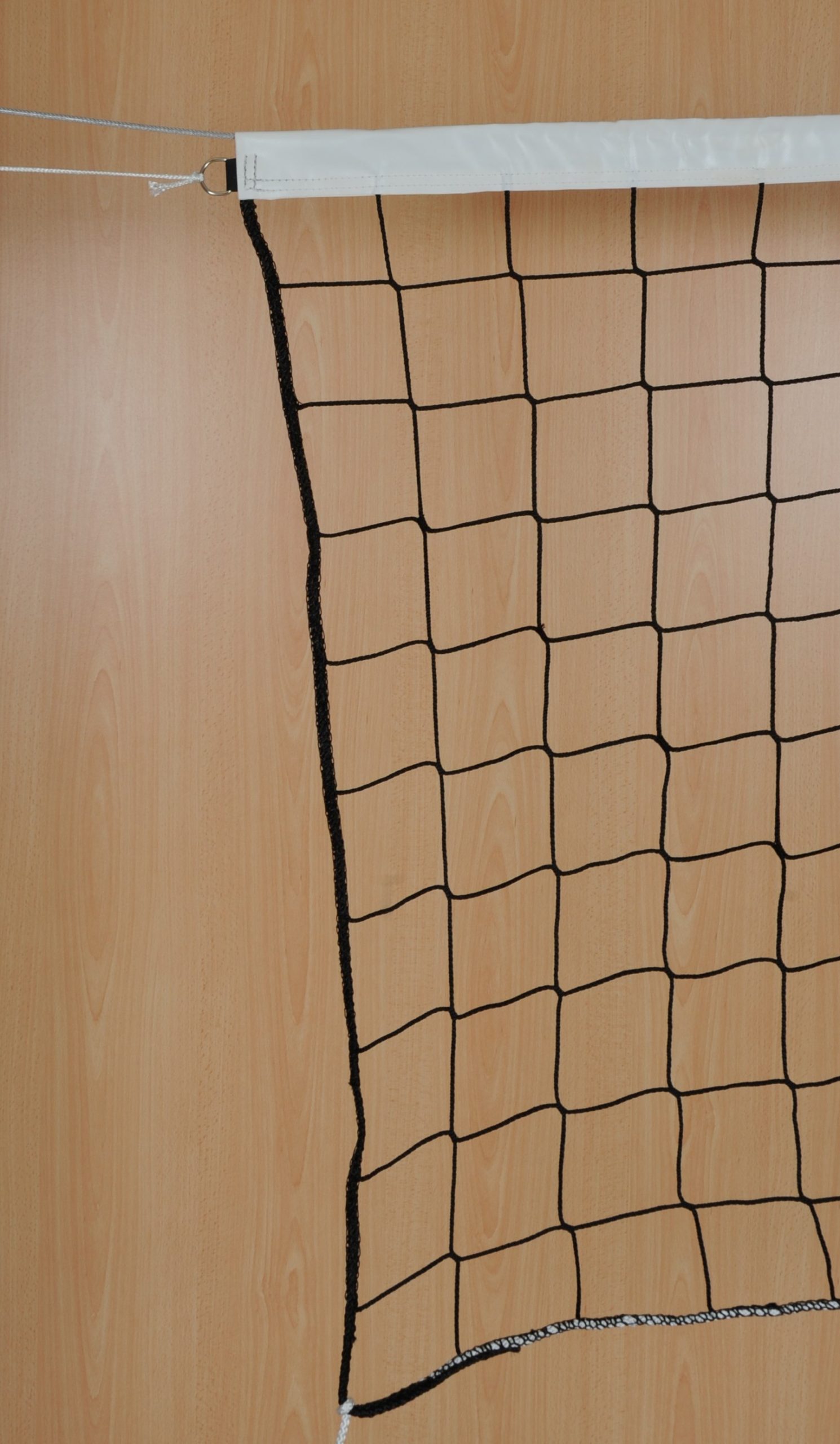 Filet en Polypropylène Ø 3mm SANS NOEUD avec câble acier de tension – Maille 100mm. Noir Bande PVC supérieure Dimensions : 9m50 x 1m00. L’unité
